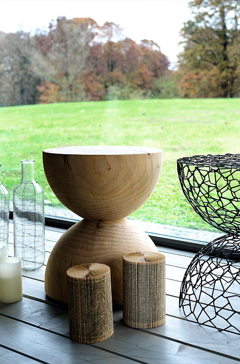 Эта коллекция идеально воплощает ценности устойчивой мебели, поскольку при ее изготовлении используется переработанная древесина деревевь, упавших естественным путем или вырубленных в целях безопасности частными лицами и муниципалитетами, которые в противном случае были бы отправлены в утилизацию. Результатом является идеальная гармония между инновационным дизайном и уважением к окружающей среде, без какой-либо химической обработки.