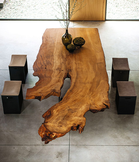 Каждый клиент может изготовить свой собственный стол из дерева каури, выбрав натуральную или смоляную отделку, чтобы подчеркнуть форму и текстуру древесины. Тщательный отбор и мастерство изготовления гарантируют создание эксклюзивных дизайнерских столов, способных элегантно и индивидуально вписаться в любую обстановку.