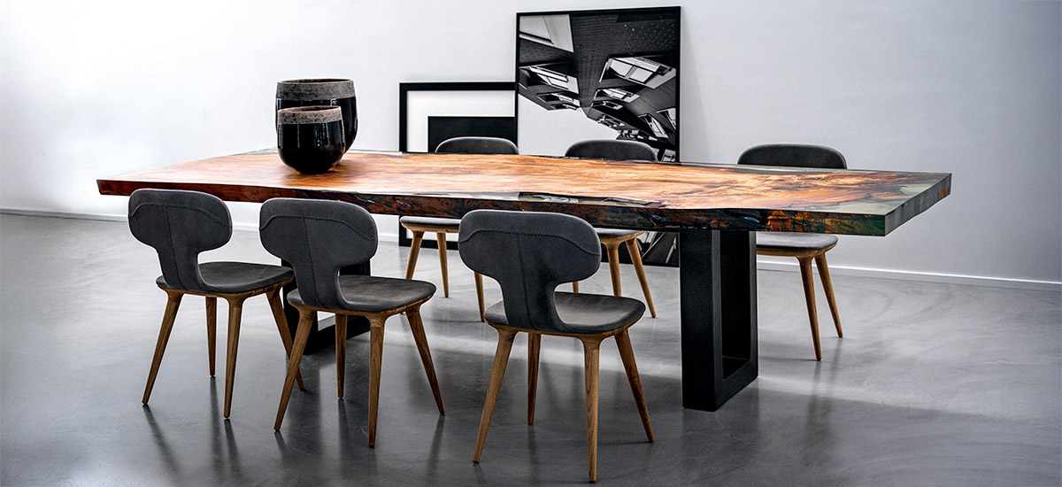 Компания Riva1920 смогла усовершенствовать этот необыкновенный материал, создав уникальные и неповторимые дизайнерские изделия. Каждый стол и журнальный столик в коллекции рассказывает тысячелетнюю историю, созданную природой, временем и искусной работой. Будь то обеденный стол или журнальный столик, каждое творение поражает своей индивидуальностью и эстетическим воздействием. Кроме того, каждому покупателю предоставляется сертификат подлинности продукции с точной датировкой года каури, определенной радиоуглеродным методом.