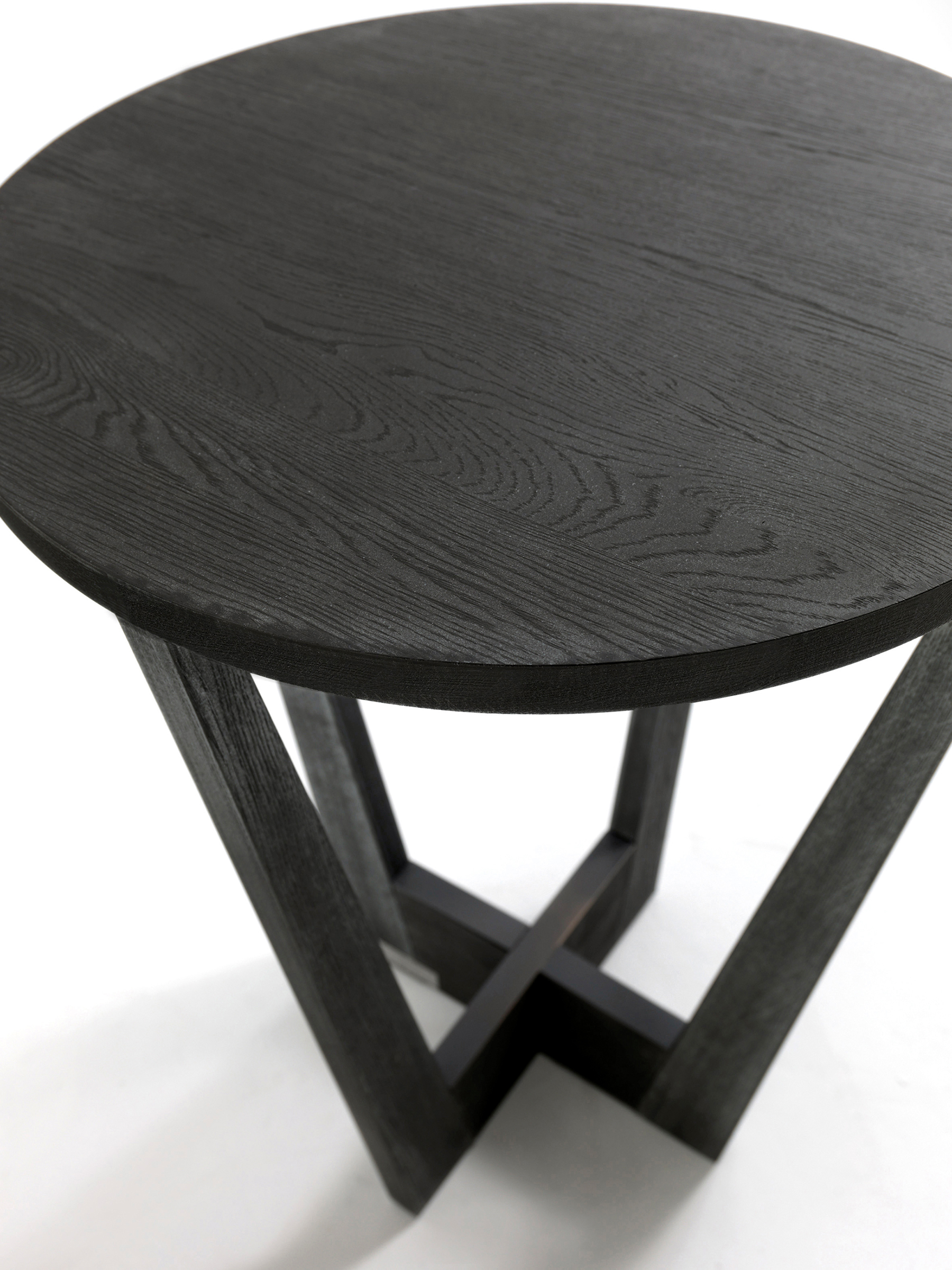 Круглый стол для закусок, полностью изготовленный из массива дерева со столешницей из клееных досок, с радиальным основанием в качестве подставки для ног. Доступны два диаметра и две разные высоты.