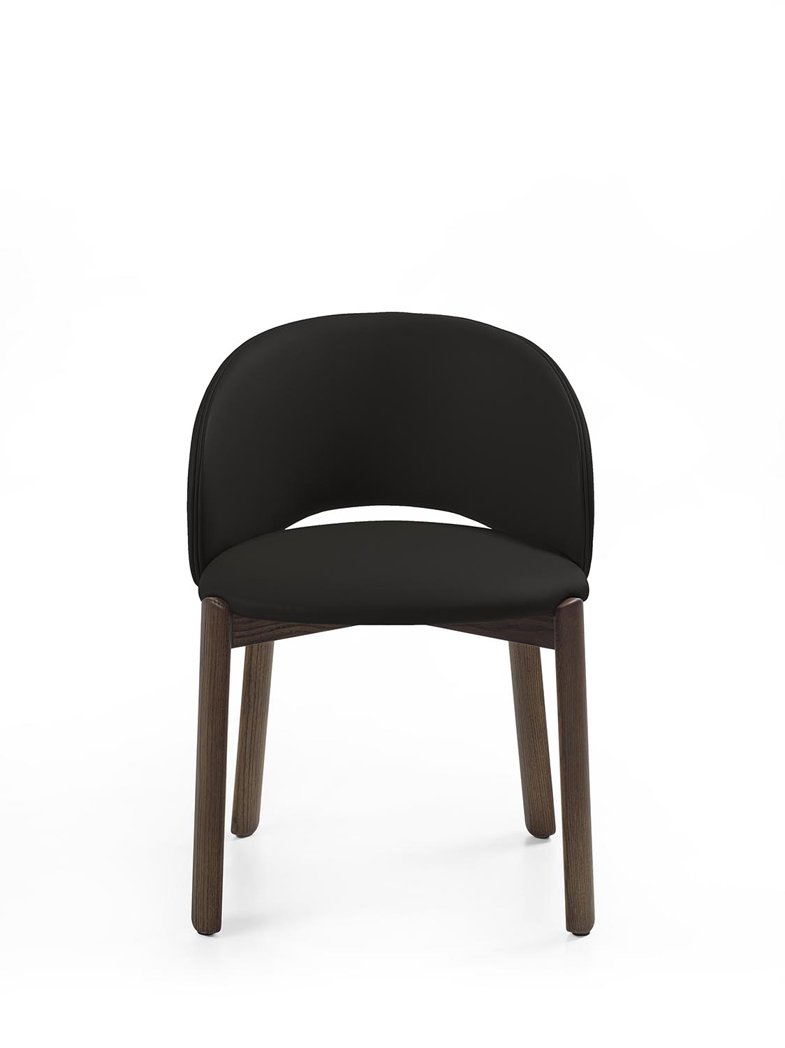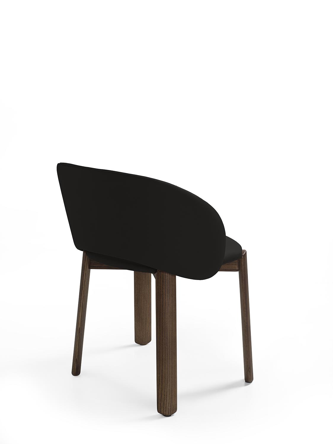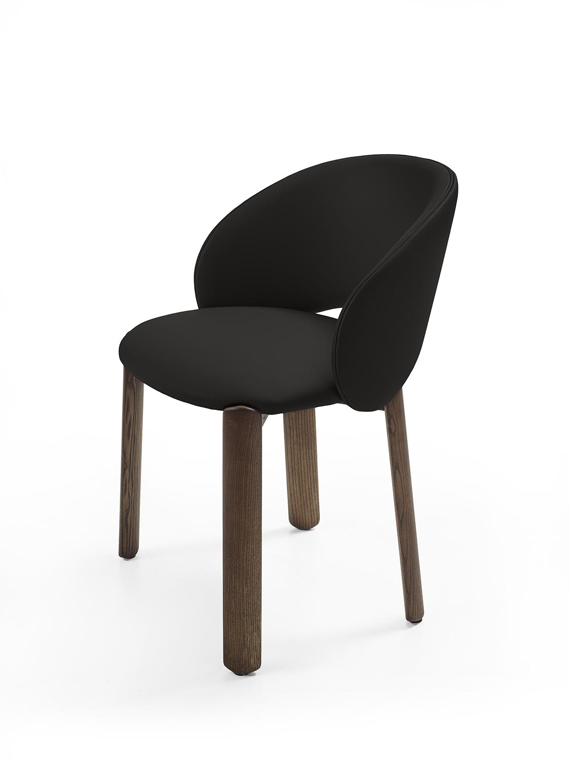 Стул с ножками из массива дерева, отличающийся плавными формами и закругленными профилями. Спинка плавно переходит в подлокотники. Сиденье и спинка могут быть обиты кожей или тканью.