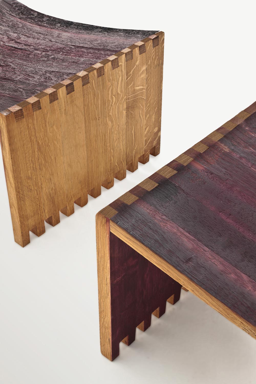 Скамья полностью изготовлена из дуба от барриков. Сиденье - из склеенных между собой реек, изогнутая часть которого определяет его комфорт. Вертикальные части характеризуются хвостовым соединением.