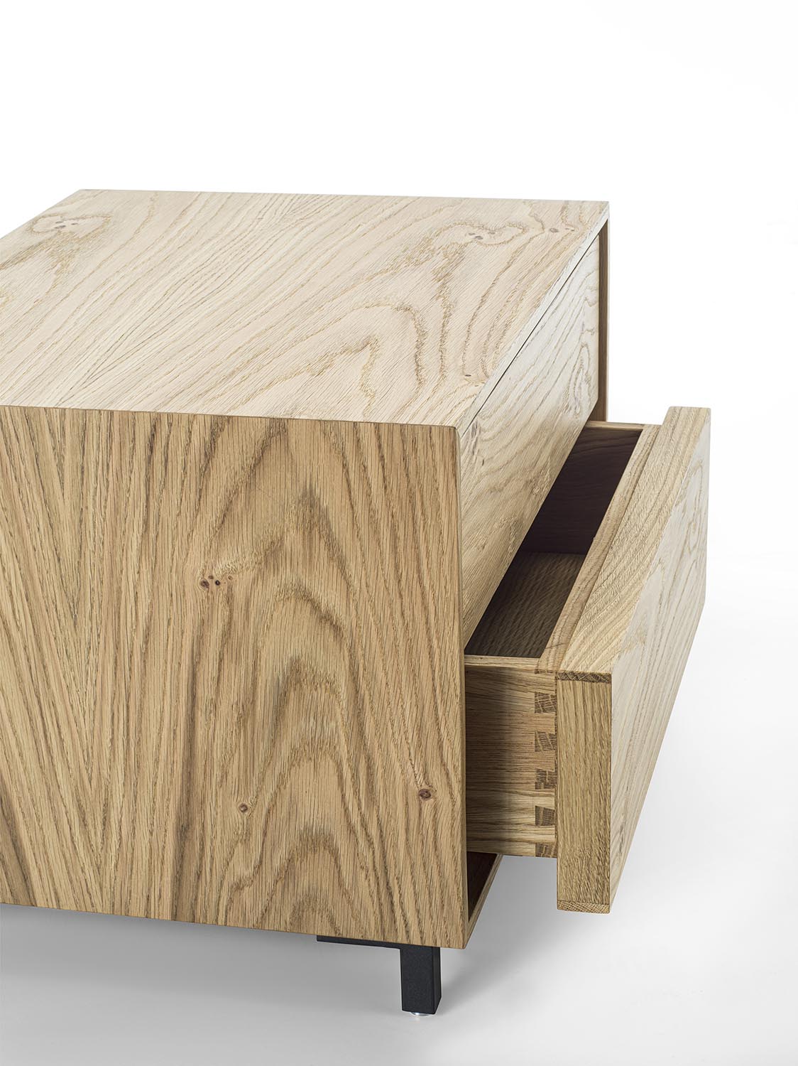 Прикроватная тумбочка из наборного массива и и массива дерева с 2 ящиками, выполненными традиционным соединением «ласточкин хвост».