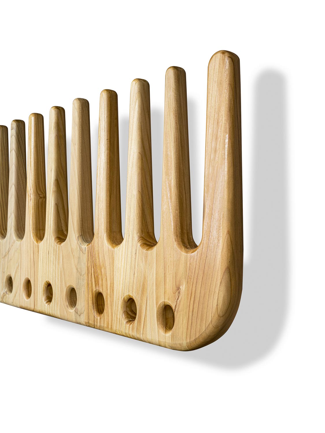 Вешалка для одежды из массива ароматного кедра формой расчески, незаменимого инструмента в мире парикмахерских услуг. Это дизайнерское произведение превращает повседневный предмет в скульптуру с сильным визуальным эффектом. LA PETTINEUSE – это дань мастерству, красоте и функциональности: аксессуар для мебели, рассказывающий историю ремесла и подчеркивающий его эстетику вечной элегантностью.