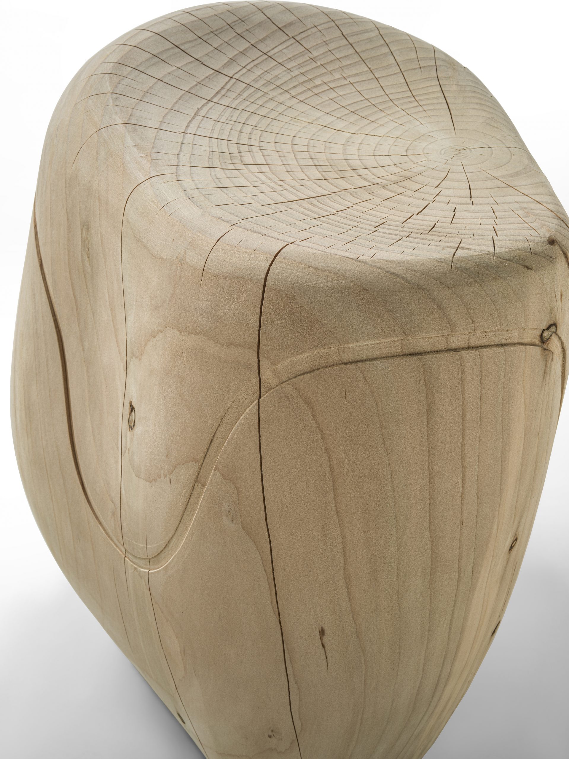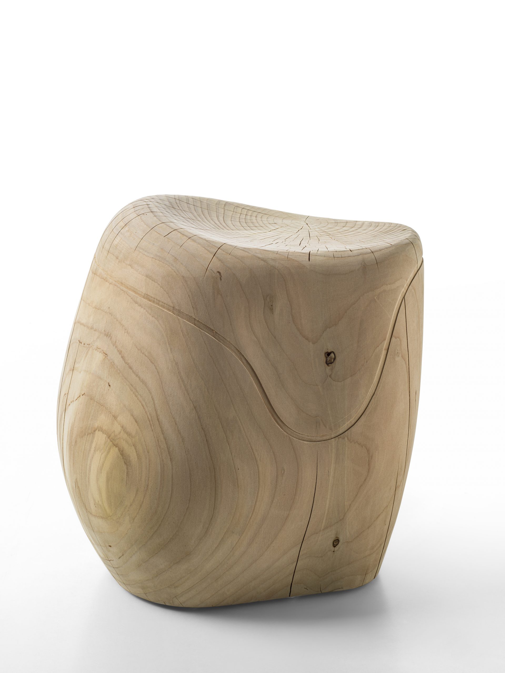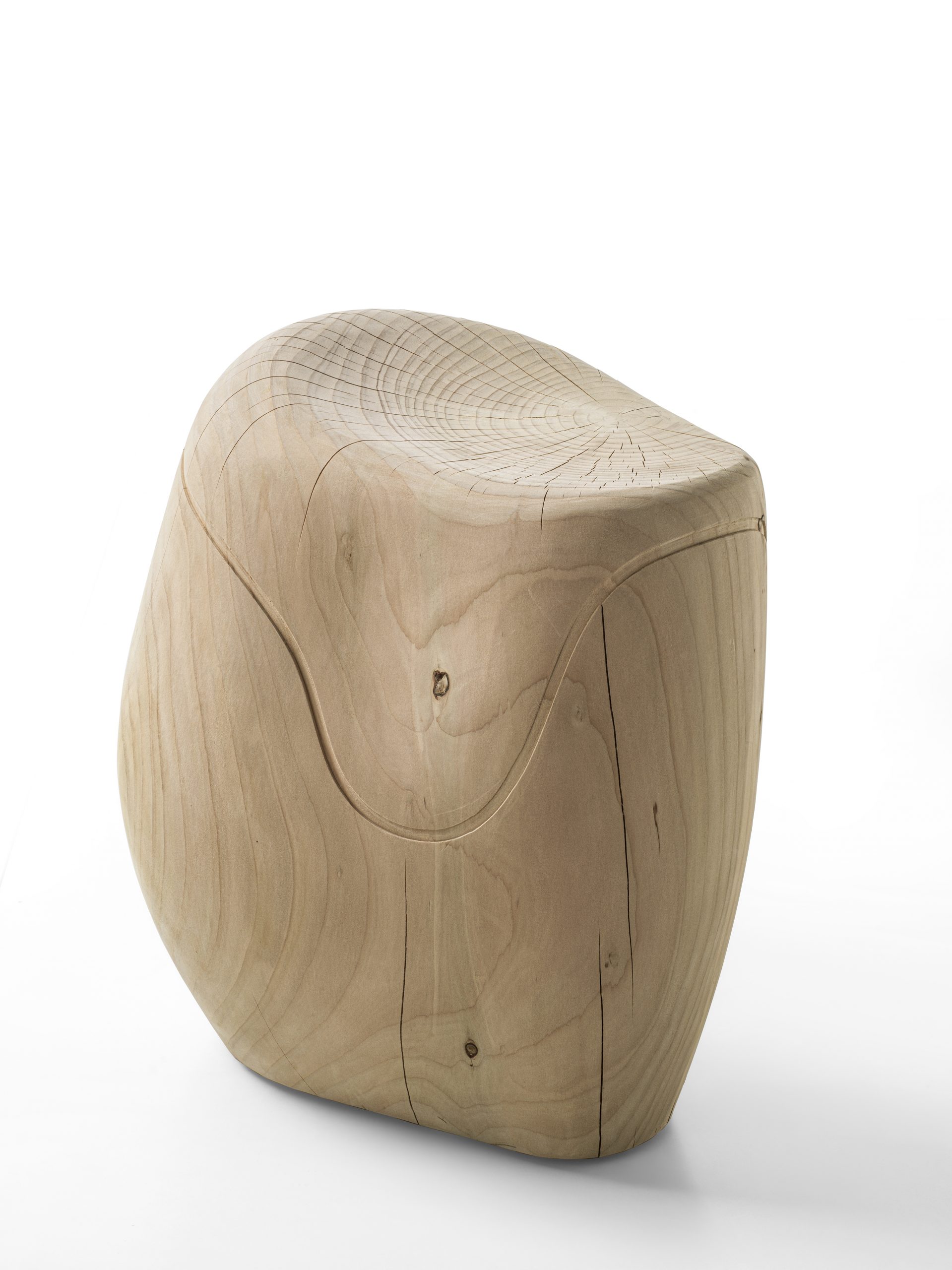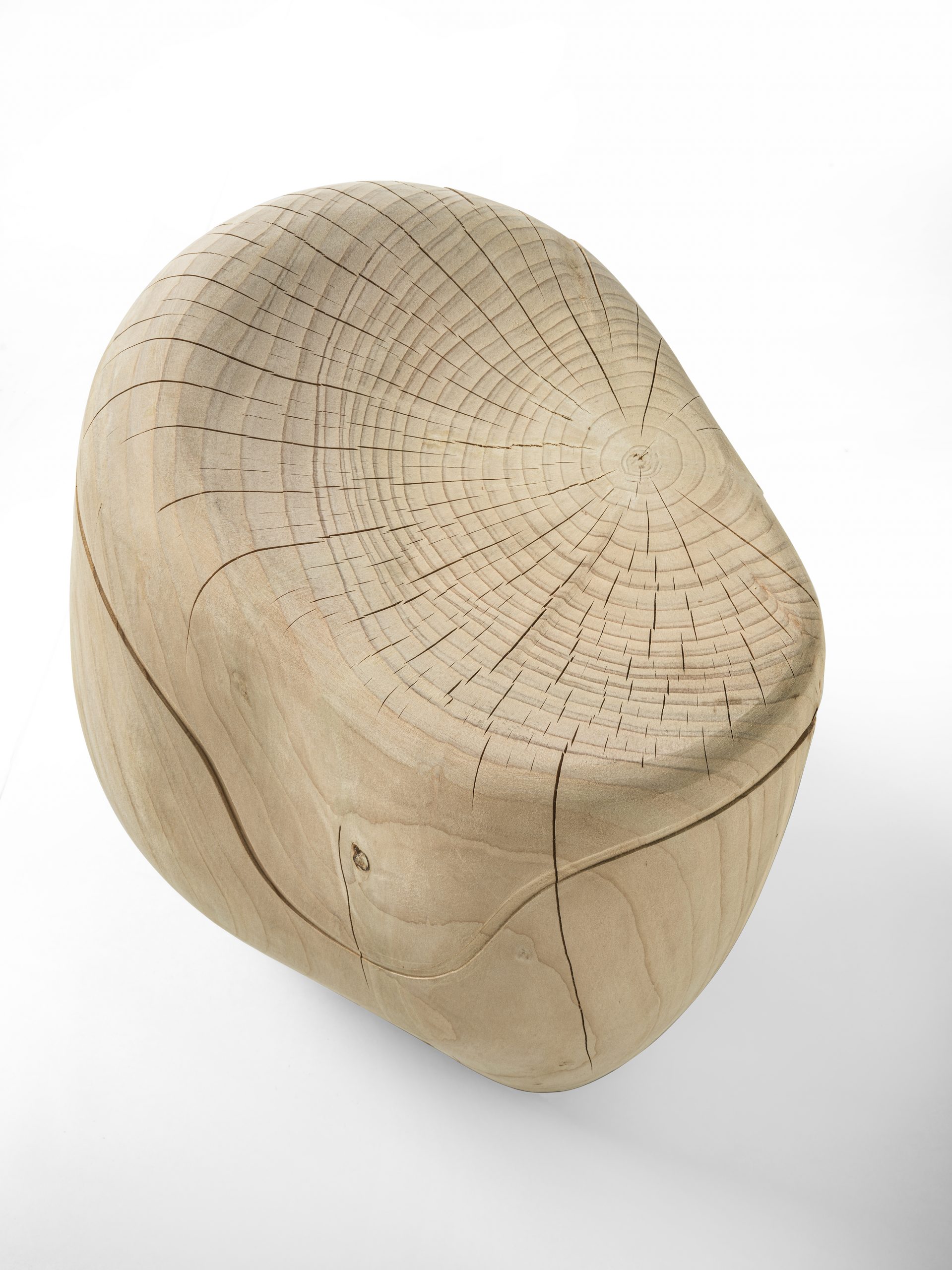 凳子由一整块雪松实木打造而成。其形状类似马鞍(一种马具),让人联想到骑马的乐趣。