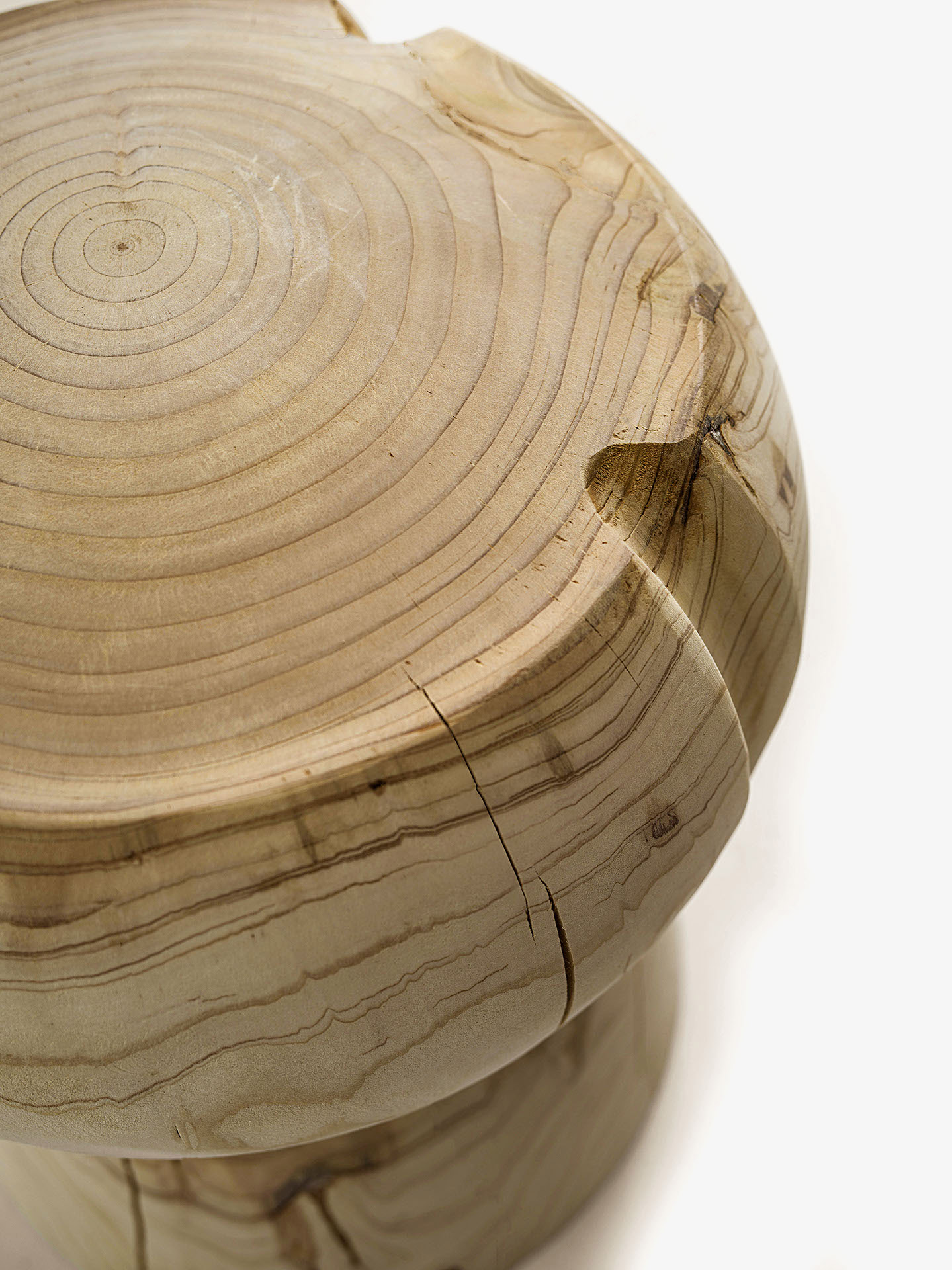 凳子采用一整块散发着自然清香的雪松木制作而成,其形状如同一个香槟的橡木塞。