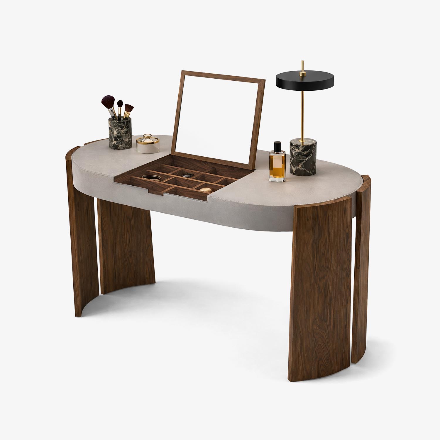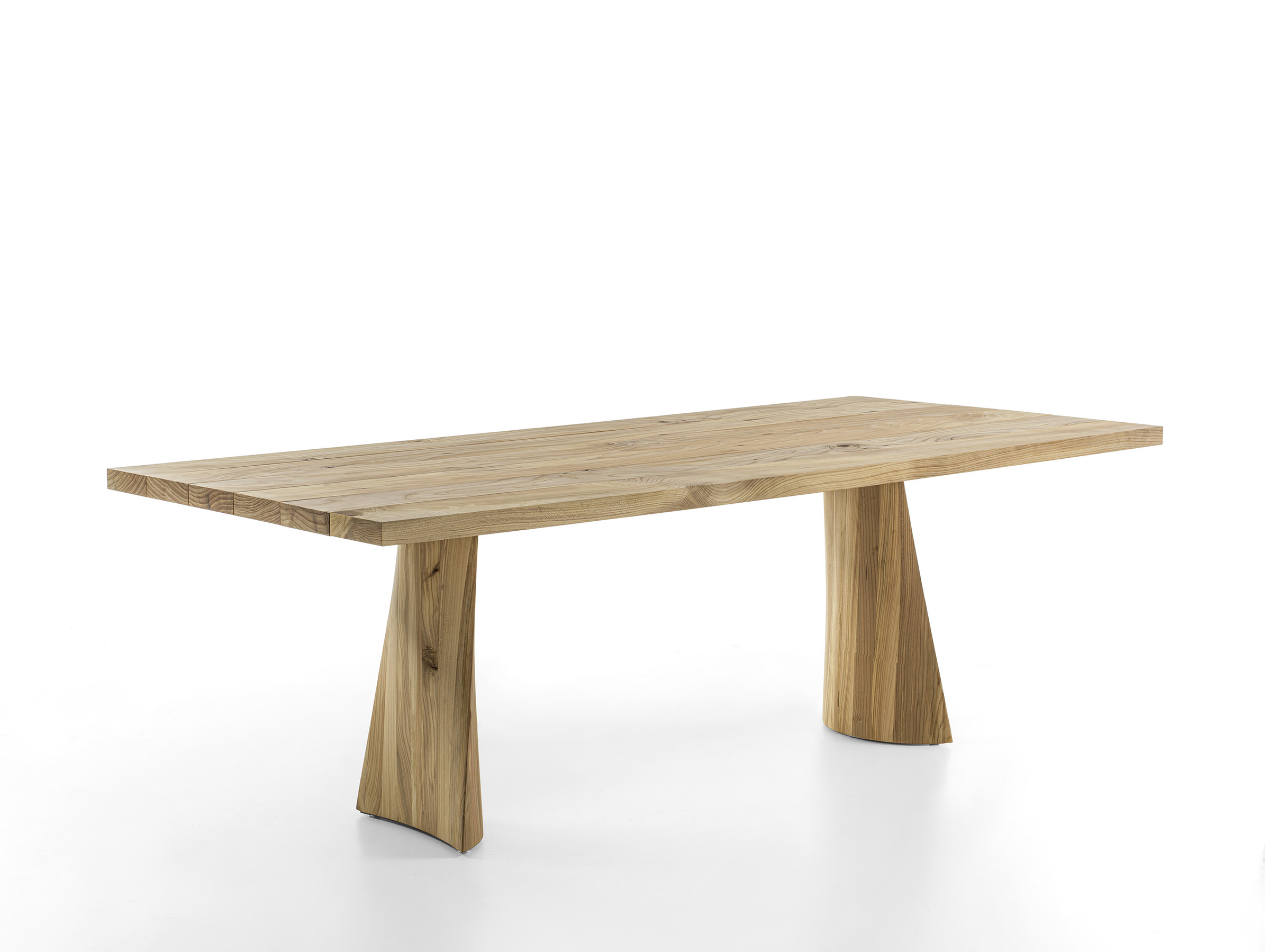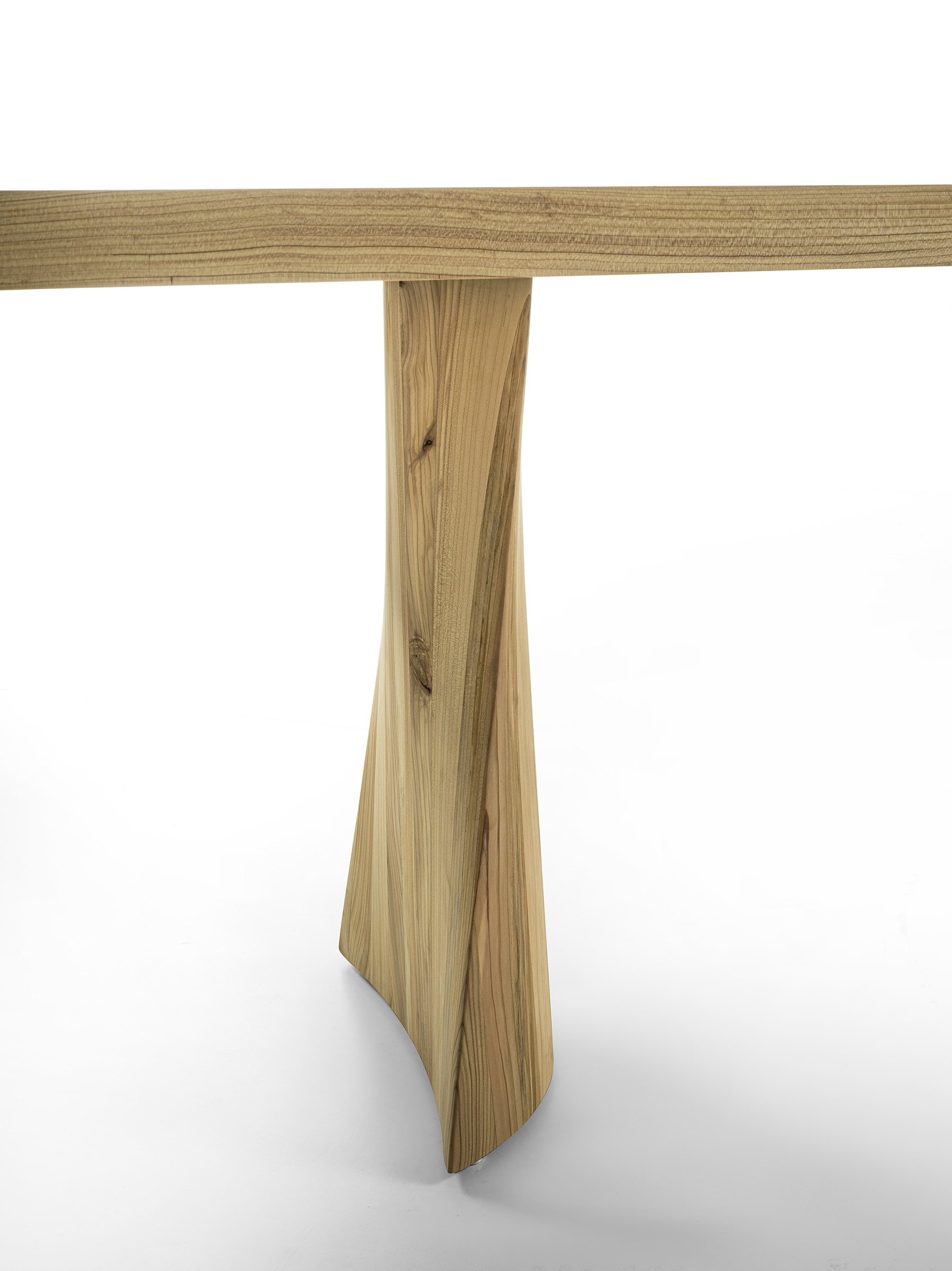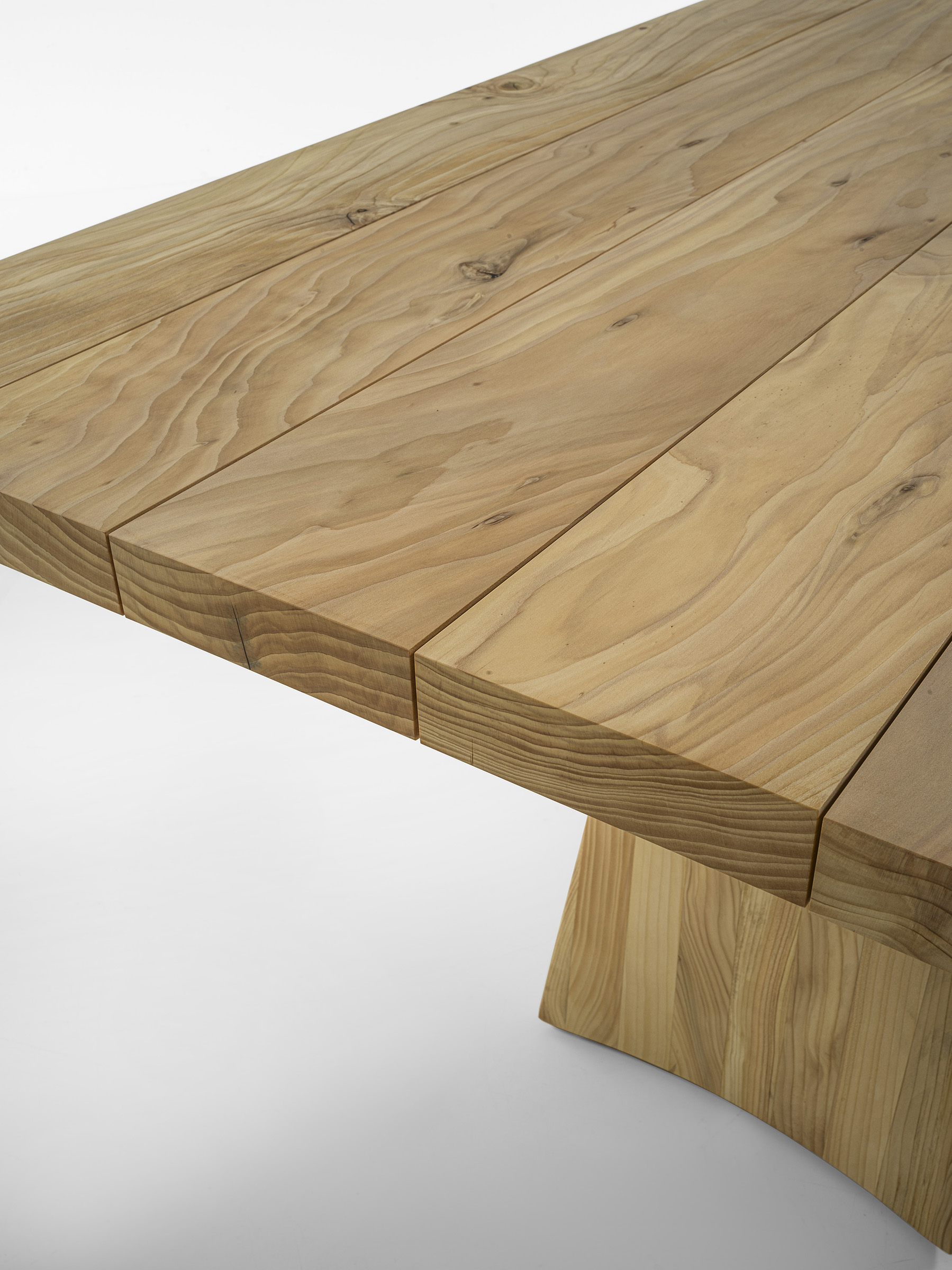 是 Solid Swing 的户外版本,采用黎巴嫩香柏木打造。桌面由相邻的木板拼接而成。桌子的底座形状由曲线和直线相互交错,赋予它轻盈的外观。